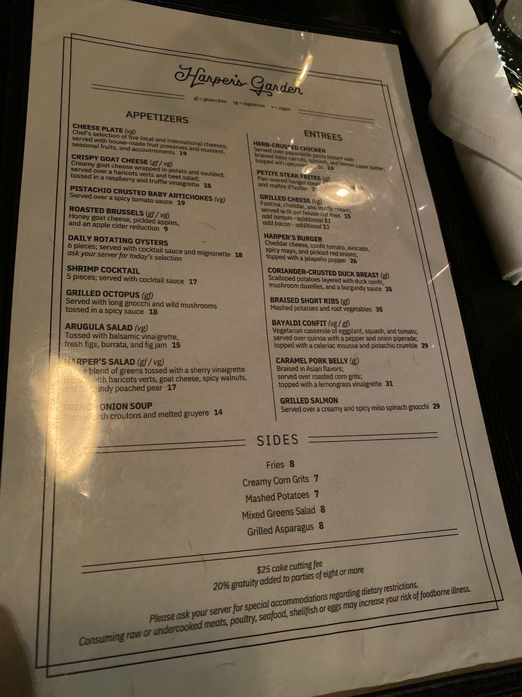 Introducing Harper's Garden, a tapas and small plates restaurant in Philadelphia offering a diverse menu with vegan and vegetarian options. The upscale yet casual ambiance includes outdoor seating and a full bar. Highlights include the Cheese Plate with local and international cheeses, Gazpacho, Lobster Tacos, and Grilled Salmon. Customers rave about the attentive service and unique cocktails, making it perfect for special occasions or casual gatherings. Don't miss out on the charming garden patio and happy hour specials. Harper's Garden is a must-visit for foodies looking for a memorable dining experience in the city.